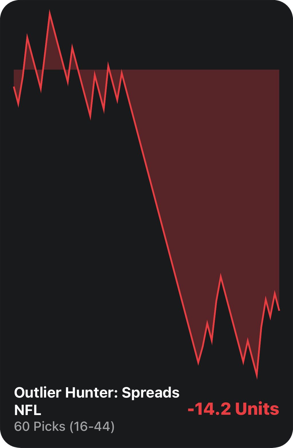 On the negative side for Spreads betting, the Outlier Hunter model went 16-44 and netted -14.2 units.