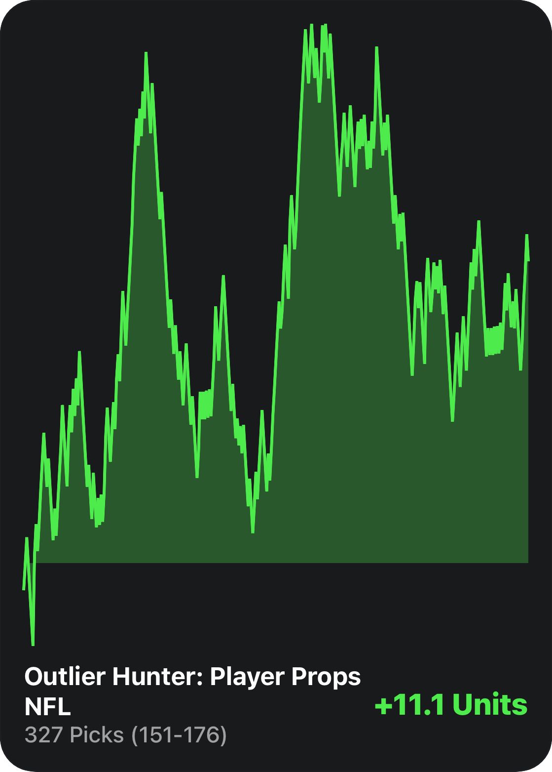 And finally, Outlier Hunter Player Props went 151-176, winning +11.1 units.
